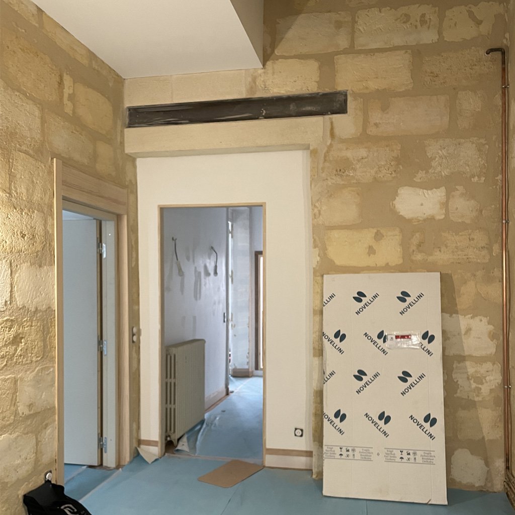 Complete renovation of a quintessential Bordeaux apartment on Quai des Chartrons, created from the division of a historic townhouse.