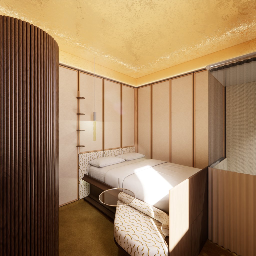 Concept studies for transforming a 9 m² maid’s room into a 4-star hotel suite.